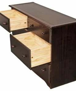 The redesigned double dresser meets the new CPSC tipover safety regulations and now features solid wood back panels which replaced plywood. Four giant jumbo drawers with plywood bottoms will reliably hold substantial weight. The dresser is well-engineered, sturdy and functional. Made entirely of solid pine wood and hand painted, it is aesthetically pleasing, silky smooth and practically knot-free. Sold separately or with the optional mirror and available in 4 finishes, it will be compatible with many design ideas and interiors or you can choose from other matching in color and style furniture pieces designed by Palace Imports.