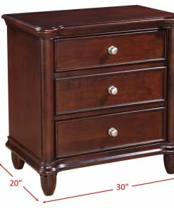 Create a comforting atmosphere with the Gavin collection. Classic lines, decorative molding and a traditional multi- step rich cherry finish make this set distinctively compelling. This attractive nightstand combines comfort with storage and practicality. Long-lasting strength and durability come from the kiln-dried solid pine wood frame and veneers, which feature beautiful color tones.