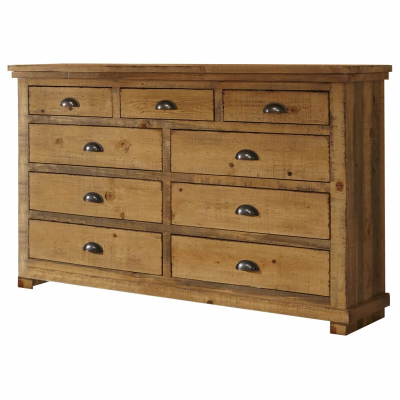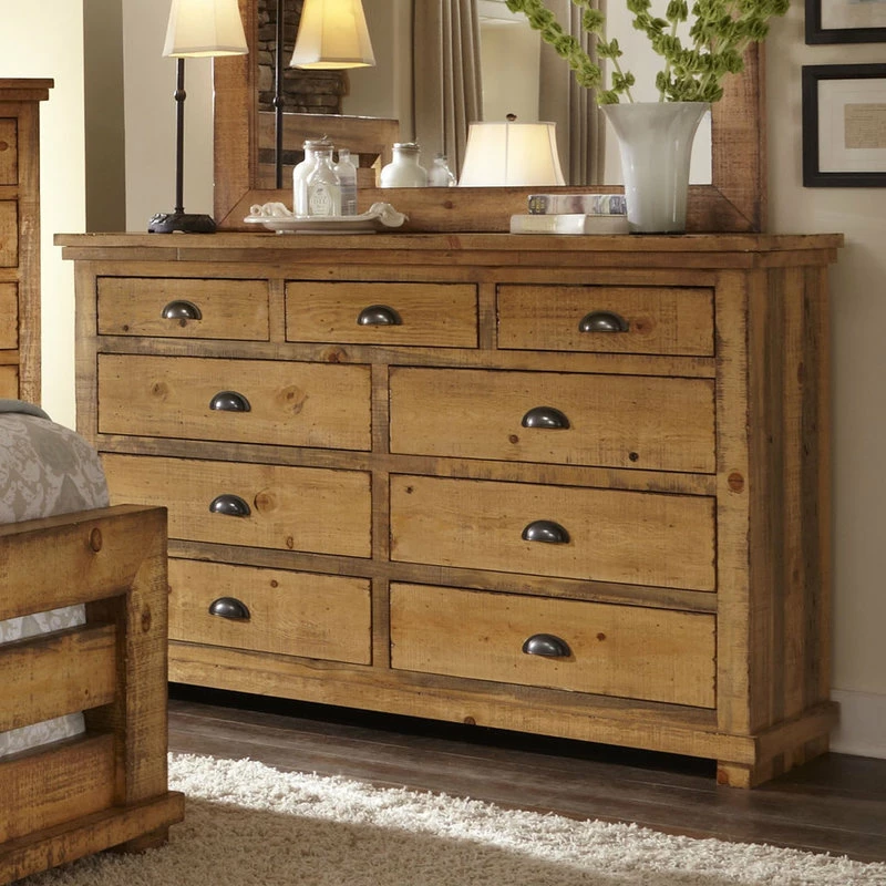 Solve your storage woes in chic rustic style with the Willow Dresser With Mirror. With a hand-applied distressed finish, the Willow boasts a well-loved look that brings a sense of history to your home. Its nine drawers provide plenty of space for stowing clothing, linens or loose items. This bedroom accessory brings rich antiqued style to your space.