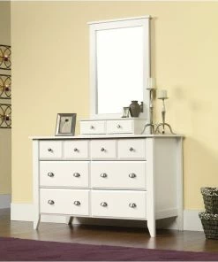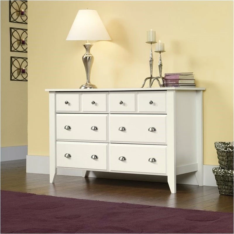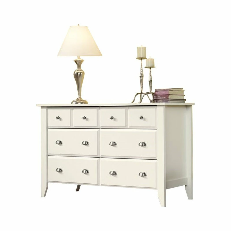 Add some classic beauty to your bedroom dรฉcor with this dresser from the Shoal Creekยฎ collection. This chest of drawers features six storage drawers that open and close on smooth metal runners and include safety stops. The four lower drawers are extra deep so you can store the thickest of shirts, stacks of slacks, shorts and more! Find room for those extra bed sheets, kitchen linens, or seasonal beach towels. The top surface of this 6-drawer dresser helps with your morning routineโit is the perfect place for your perfume, glasses, phone charger, or your morning coffee. Find space for a lamp or nightlight, a stack of books, or photos of your loved ones. This dresser holds clothes and memories! Add style and storage to your master bedroom, guest bedroom, and even this kid’s room with this bedroom furniture. Finished in a clean Soft Whiteยฎ finish, this eye-catching wood dresser is sure to dazzle and keep you organized.