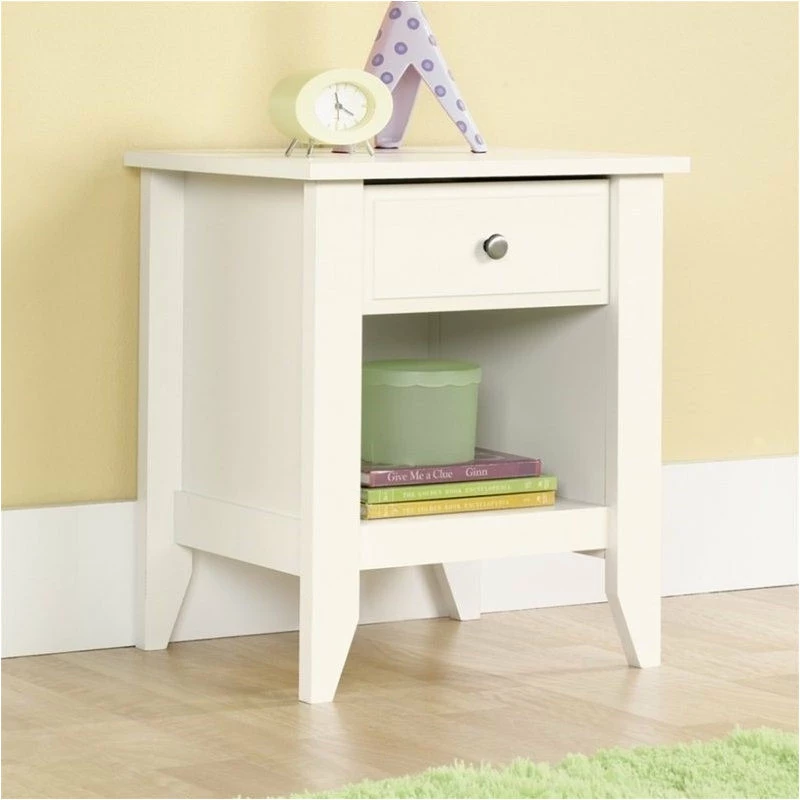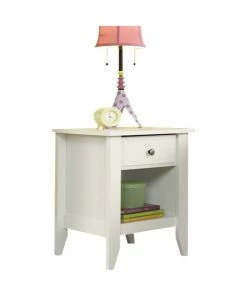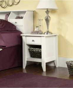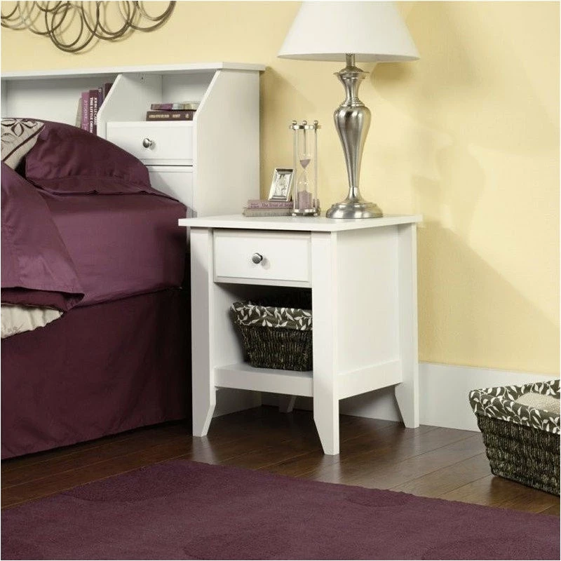 Looking for some stylish bedside storage? Check out this Soft Whiteยฎ night stand from the Shoal Creekยฎ collection. Find room for all your do-dads and gadgets in the easy-to-access drawer that opens and closes on smooth metal runners. The open shelf below provides you with even more storage and makes this sweet little bedside table the perfect addition to your bedroom.