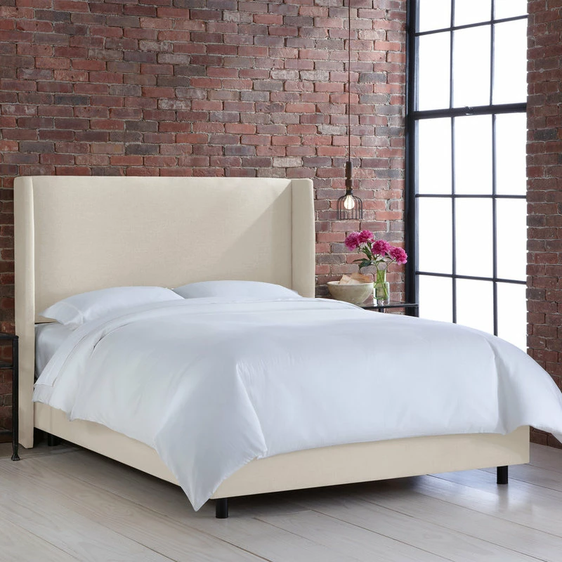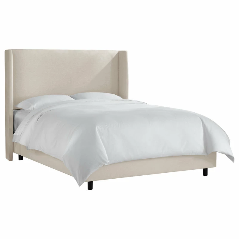 Set a statement in your bedroom decor with this beautiful wingback bed. Upholstered in smooth linen fabric and delicately handcrafted in plush foam padding for added support and comfort. This bed is guaranteed to become the focal point in your room. Spot clean only. Box spring and mattress required. Easy assembly required. Manufactured in Illinois.