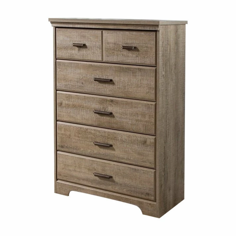 This country-style collection stands out for its fine details, simple and harmonious kick plates and decorative moldings. Interestingly, the top drawers on the dresser and chest are separated by a groove that creates the illusion of a double drawer. The set features a warm finish that imbues the room with a cozy atmosphere. You will love this traditional-style chest for its many storage spaces. The top drawers are separated by a decorative groove that creates the illusion of double drawers. It is enhanced by a rich finish that creates an air of sophistication in any bedroom.