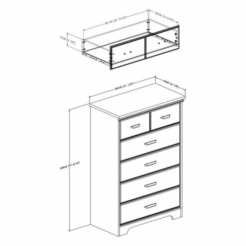 - Decorative groove on the top drawer that creates the illusion of double drawers