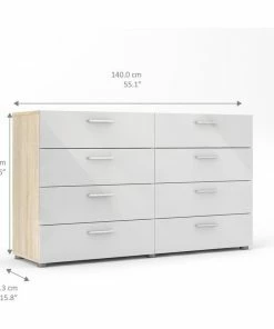 Keep it clean. Austin double dresser can organize your clothing without overbearing your room. With 6 wide drawers, sweaters and lines find a happy home here. Unique dresser depth makes the Austin ideal for smaller spaces or high traffic areas in bedrooms. Streamlined metal hardware and round feet give the Austin line its simple chic feel. Standing strong with metal drawer liners and an easy to clean Foil surface the Austin dresser will be a productive and durable piece in your collection.