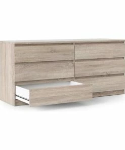 With ample storage space in its 6 roomy drawers the Scottsdale double dresser is an easy way to keep your belongings organized. From delicates to bulky items the Scottsdale 6 drawer double dresser can store various items while offering a modern, sleek look that merges seamlessly with any decor. With metal drawer glides and maple drawer interiors for smooth movement the chest is a sturdy, yet simply designed piece. The finish is easy to clean, water, scratch, and stain resistant making it an ideal choice for families or college Living.
