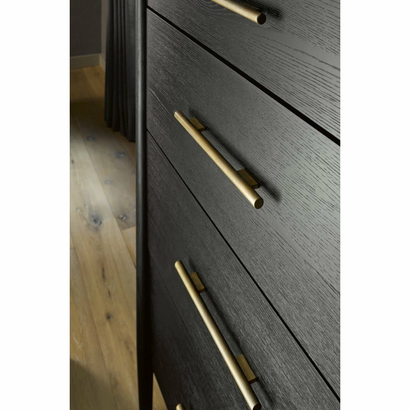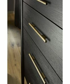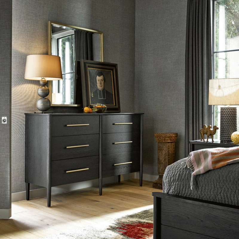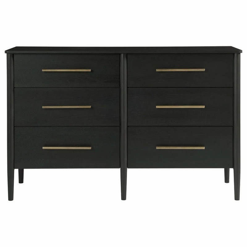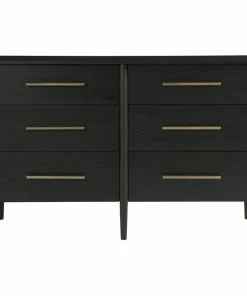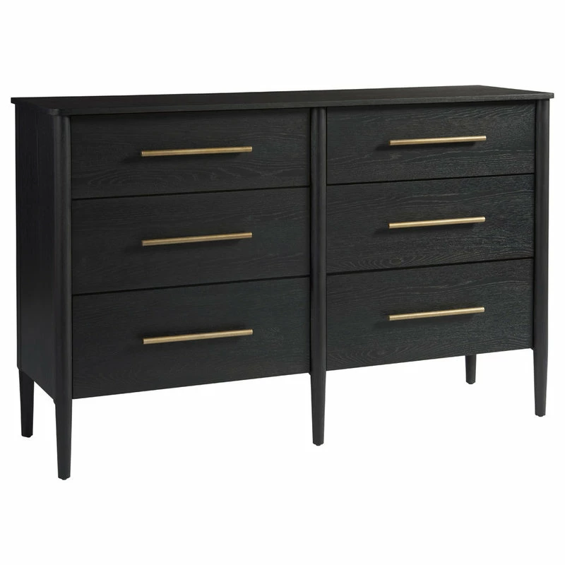 Store folded garments within the clean lines of the Langley Dresser, built with six drawers punctuated by contemporary brass hardware and finished in a deep brown hue.