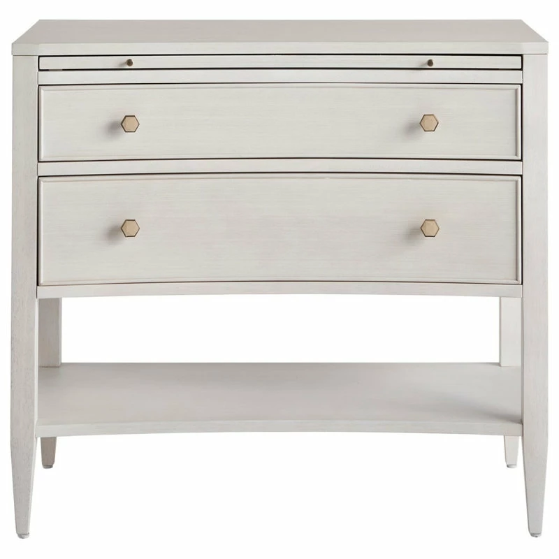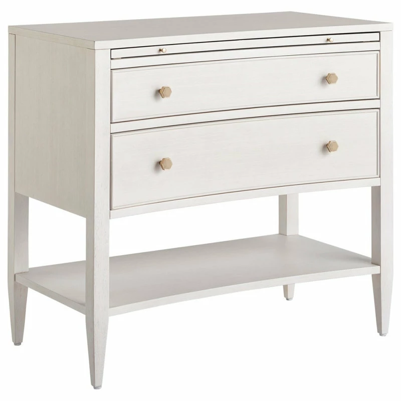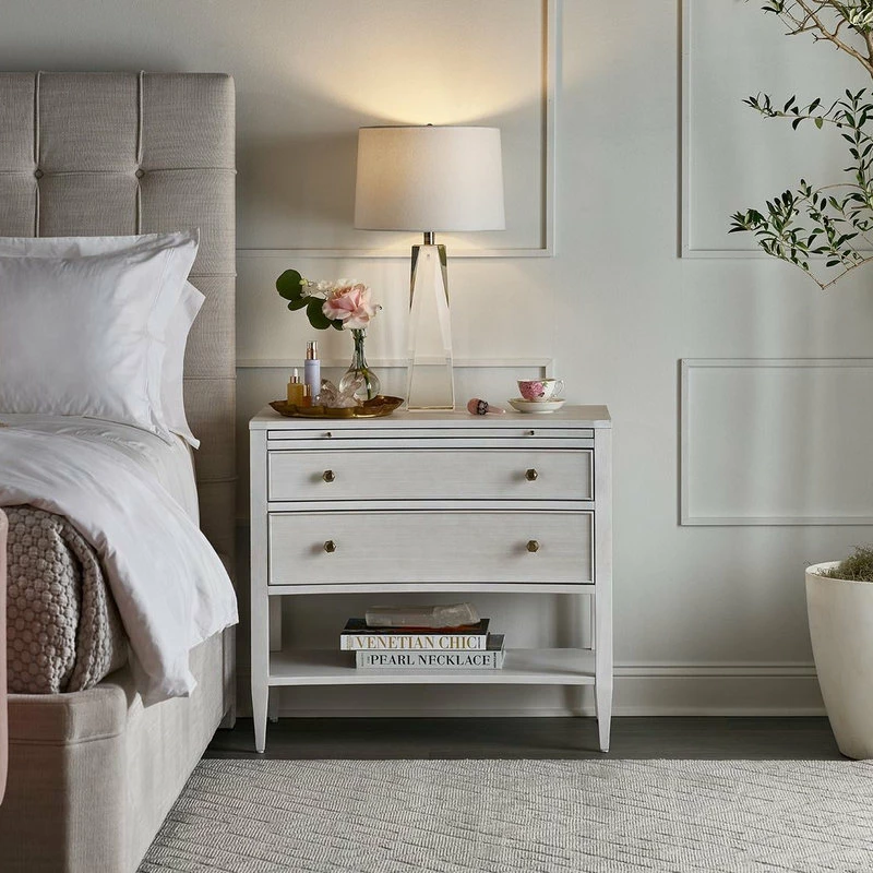 Wonderfully chic and sophisticated, the Chelsea Nightstand is encased in an Alabaster finish and designed with two drawers, and a laminated pull-out shelf.