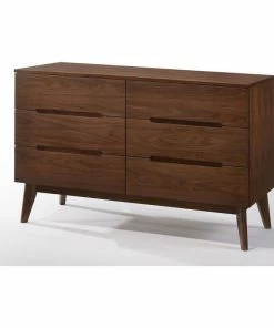 Organizing is made simple with the straightforward Modrest Lewis Dresser. Its six drawers are easy to access with their carved handles, and their deep basins offer ample space for your prized garments. Adding the finishing touches to its midcentury look are four tapered legs and a linear design. Turn to the Modrest Lewis for a fresh, current take on traditional style.