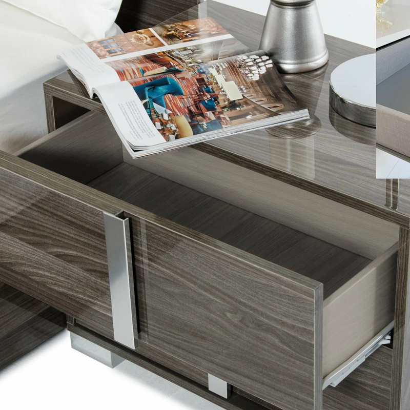 With a glossy elm finish and streamlined design the Modrest San Marino Modern Nightstand offers your bedroom the best of style and function. Complete with 6 luxurious soft-closing drawers for storage and durability, this nightstand is complete with a contemporary modern vibe. Aluminum handles shine as a compliment to its overall craft and build. Full assembled for convenience, this nightstand is the spot light waiting to fill your bedroom in your contemporary home.