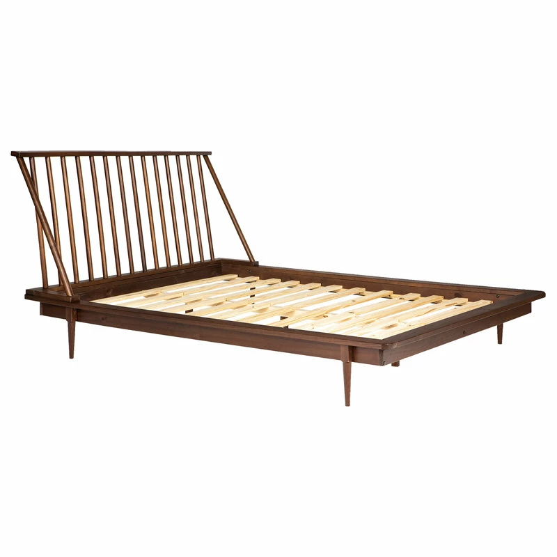 Stylistically unobtrusive and structurally sound, this solid pine spindle frame bed will keep your bedroom dreamy whether you’re looking at it or actually sleeping on it. Its platform design takes out the bothersome need for a box spring base, making it easy to place a mattress of your choice on the frame. And while the tapered legs and clean lines emanate a mid-century modern vibe, this bedframe fluidly fits in with traditional, gender-neutral, or minimal designs with its beautiful stain finish.